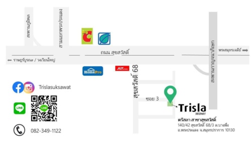 สาขาสมิติเวช ตรีสลา บาย พิมวิสา โครงการ The Racquet Club เลขที่ 11 ซอยประชัญคดี 3 (สุขุมวิท 49/9) ถนนสุขุมวิท แขวงคลองตันเหนือ เขตวัฒนา กทม. 10110 โทร. 02-118-7388, 02-119-7225, 084-089-8664